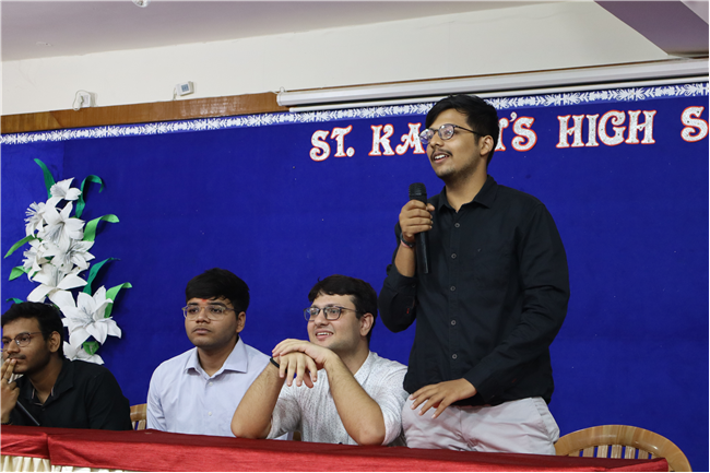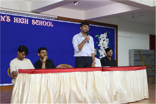 It was a heartwarming and enriching interaction as five of our esteemed alumni — four from IIT and one from BIT Mesra, namely Shashank Shandilya, B.Tech-BIT Mesra, Aditya Raunak, B.Tech- IIT Kanpur, Gaurav Khetan, B.Tech- IIT Kharagpur, Vaibhav Singh, B.Tech- IIT Guwahati, Utkarsh Pawan, B.Tech- IIT Roorkee— visited the campus and engaged with our current Plus Two Science students.