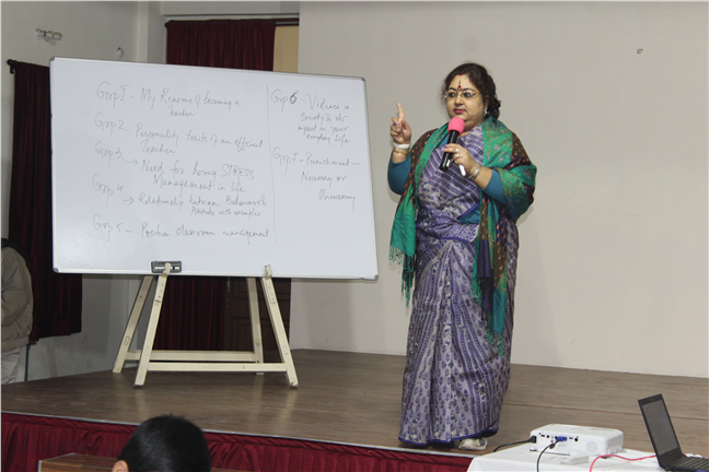 Description: A workshop on “Positive Attitude” was organised for the teachers on 20 January 2018 in the Pamela Hall. Ms. Reshmi SenSharma was the resource person. The session was quite interesting as it incorporated group activity, discussions , presentations, PowerPoint Presentations and informative videos. Fruitful discussion took place on important topics like Stress Management, Violence among teenagers , Discipline , Punishment etc. The winning teams were rewarded with a token of appreciation. This workshop was conducted by Saraswati Publication which was an effort to bring a positive attitude among teachers.