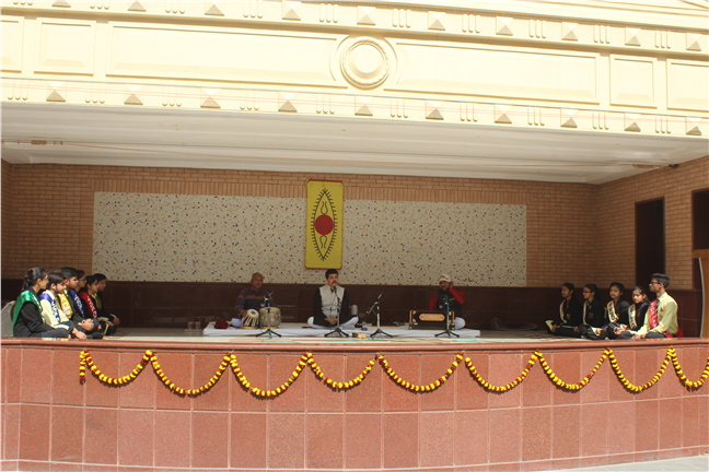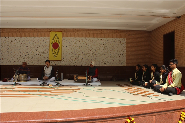Description: The students witnessed a spell binding rendition of Dhananjay Hegde on 6 February 2018. He is a young and talented Hindustani Classical vocalist. One of the interesting aspects of Dhananjay’s music is the blend of Kirana and Gwalior Gharana which he has imbibed from his Guru. The audience was enthralled by his mesmerizing voice tuned to the rhythmic beat of Tabla and Harmonium.
