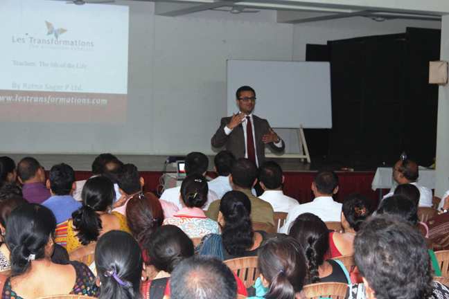 Description: Ratna Sagar organized a unique workshop on 18th of June, 2016 for the teachers of SKHS. The seminar specially focused on exploring newer and innovative approaches to teaching different subjects with the aim to bring qualitative changes in teaching methodology, with the purpose of making them more interesting and student friendly. Mr. Rajeev Khanna an educational expert made the workshop participative in nature and through his experience and exemplary use of gestures brought out the best in the participants. He used the skill of enacting of the subject by the teacher to show how learning can be enhanced was also discussed and greatly appreciated by the participants. The Director of the school Mr. D.P Galstaun and the vice Principal Mrs. Anjana James thank Mr. Khanna for organizing such an enlightening workshop and presented him with a memento as a token of appreciatation.