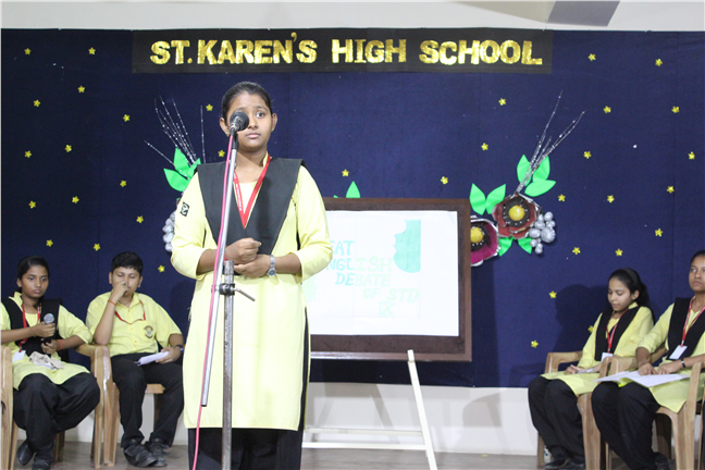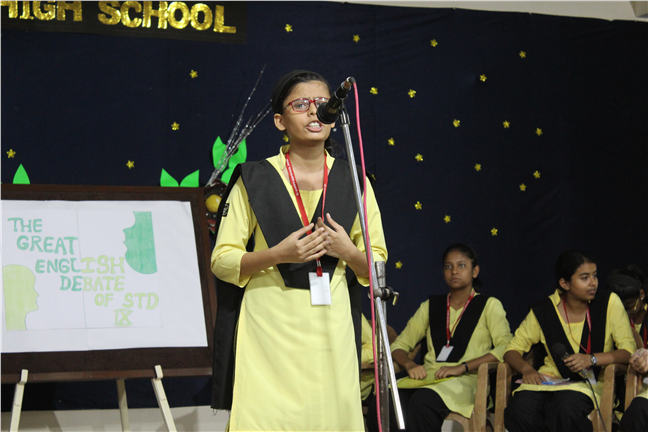 THE ENGLISH DEBATE FOR STD IX WAS HELD ON 5TH JULY.THERE WERE A TOTAL OF 16 PARTICIPANTS.THE PARTICIPANTS HAD A FORMAL DISCUSSION ON THE TOPIC "MUSIC GLORIFYINGVIOLENCE AND CRIMINAL LIFESTYLE SHOULD BE BANNED." ALL THE PARTICIPANTS SPOKE VERY WELL.THE REBUTTLE ROUND WAS QUICK AND WITTY AND TRIED THE SPEAKERS WITH INTELLIGENT QUESTIONS. DIRECTOR SIR MOTIVATED THE STUDENTS. THE WINNERS WERE AS FOLLOW-