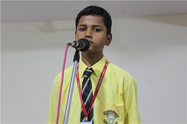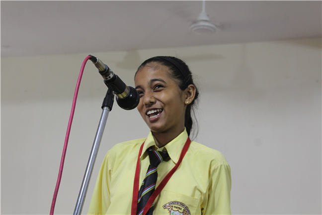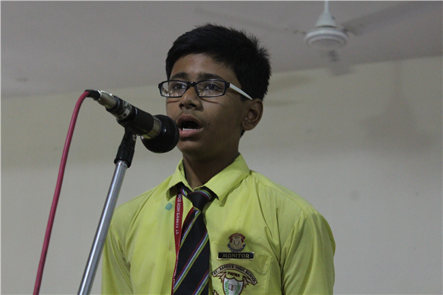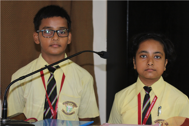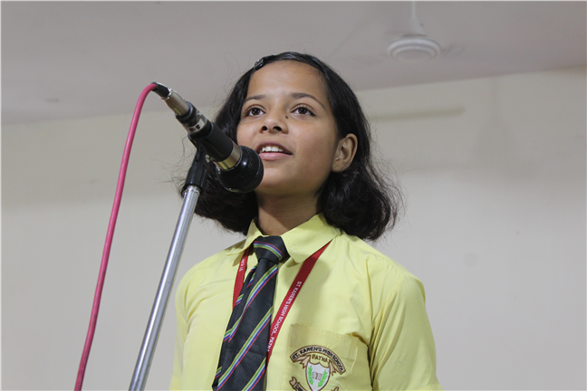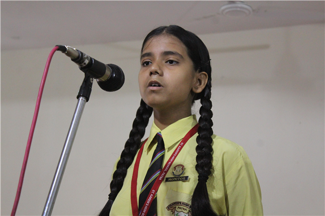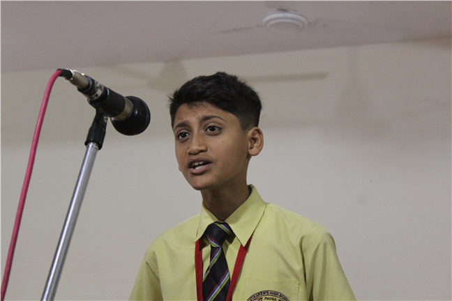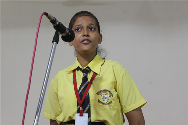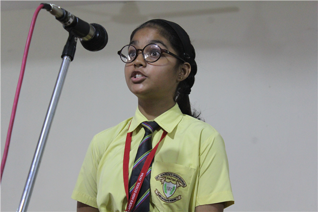 Description: An English Elocution Competition for Std. VII was held on 8th August,2018 at Pamela Hall.Twenty-four students altogether from different sections enthusiastically participated in it. The students presented excellent oratory skills.The audience enjoyed and applauded till the end.The judges were Mrs. Anjana James(vice-principal), Mrs. Sunita Singh and Mrs. Sweta Gupta. The winners were as follows: 1st Position:- Tulika Ranjan-Std-VII-F 2nd Position:- Adya Vidyarthi -Std-VII-L 3rd Position:- Anjali Anand-Std-VII-M Astha Anand-Std-VII-F