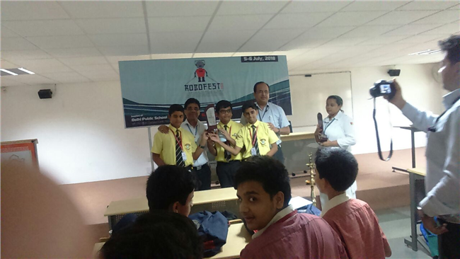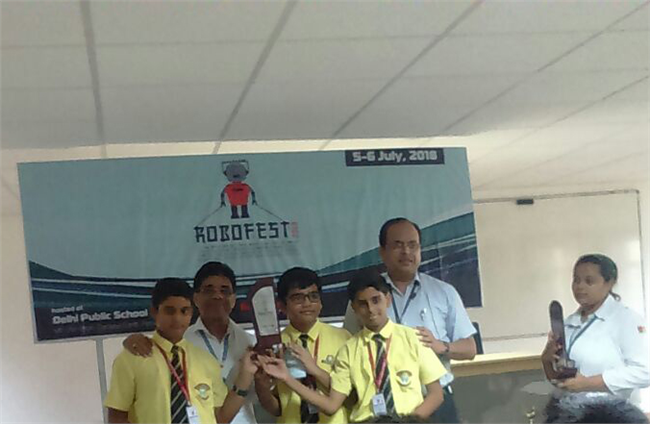 Description: DPS ROBOFEST – 2018 The students of our school have brought another glory by winning 2nd Prize at DPS ROBOFEST among 11 top schools of Patna on 5th & 6th July, 2018. The team was headed by Mr. D.K. Mishra . The participants were Vaibhav Singh (VIII C), Ayushmaan (VII D), Aashutosh Aarya (VI M)