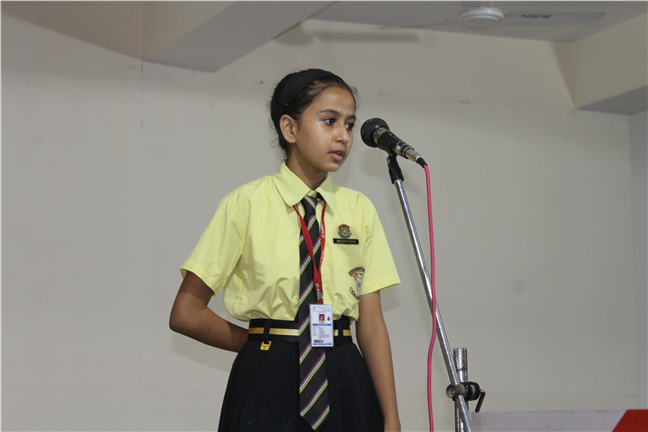 There was an English Elocution Competition held on 06th August, 2018 in Pamela Hall for Std – VI. The Vice- Principal presided over the competition with the two judges- Ms. Sandhya Hirwani and Deboleena Mukherjee. There were 22 participants who performed with enthusiasm and passion. The winners were as follows: