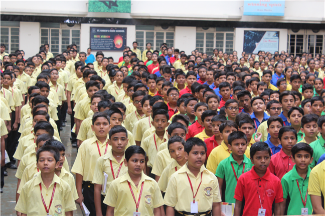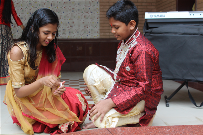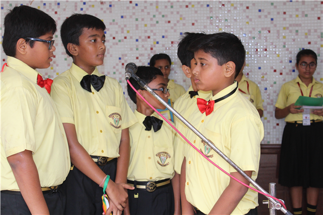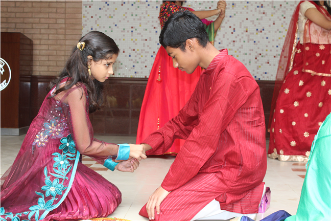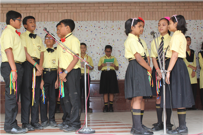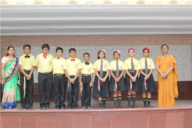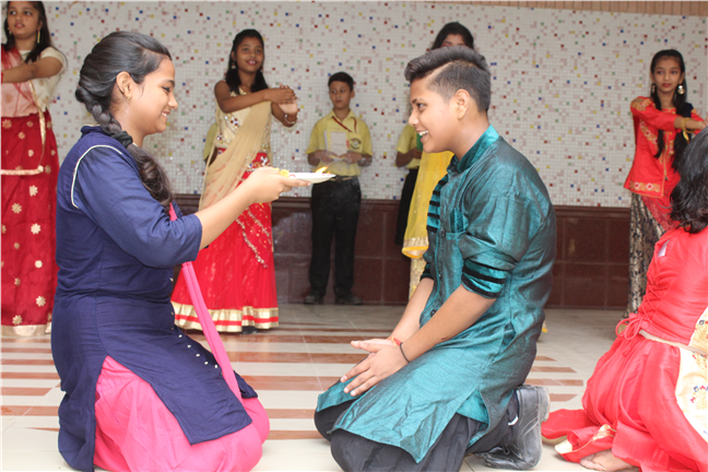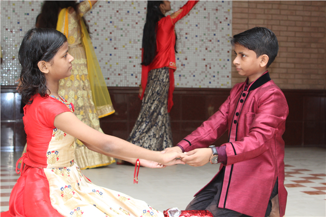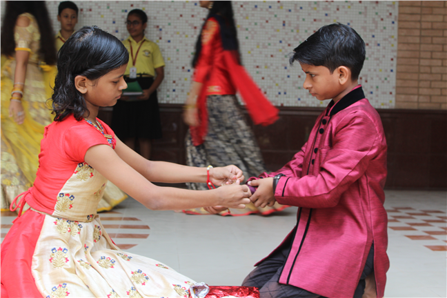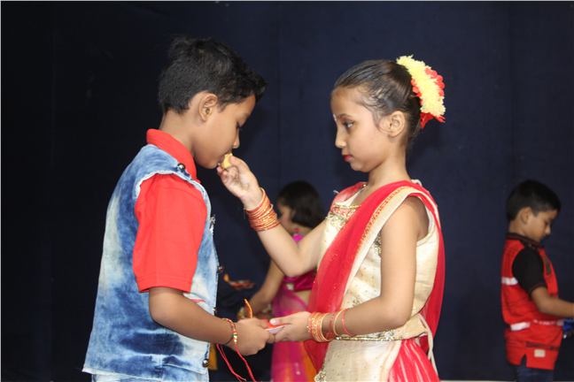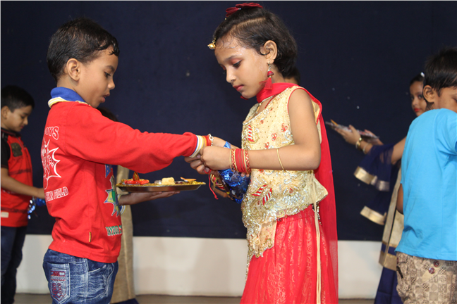 On the auspicious occasion of Raksha Bandhan St. Karen's High School,Gola Road organised a wonderful programme on 25th August 2018 in the presence of our Principal Ma'am,Jairam Sir and Vice Principal Ma'am.Children of Primary wing participated in this programme with great zeal and enthusiasm.Student from Std 1 and 2 performed beautiful dance to show the love and affection among the brothers and sisters which mesmerized all of Std. 4 and 5 presented a wonderful skit and a melodious song. On this occasion,our Vice Principal tied a pious knot on the wrist of Jairam Sir which was really a great surprise for him.