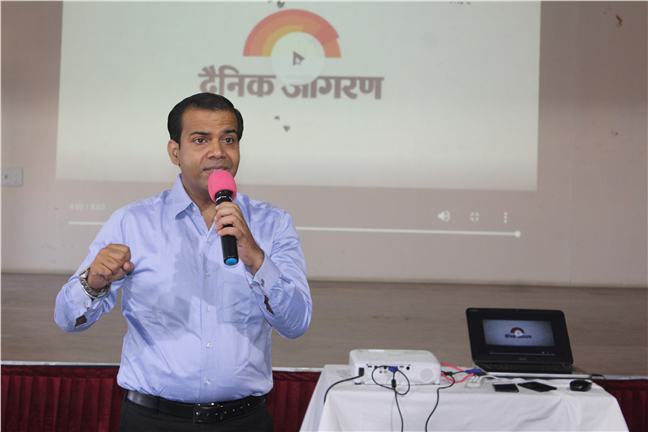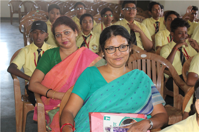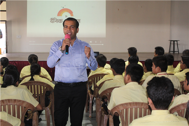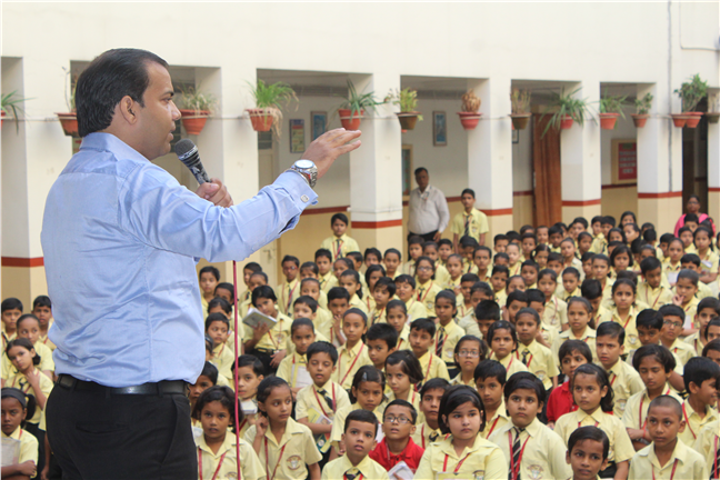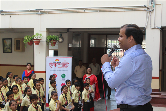 During the morning assembly of junior students, Danik Jagaran organized story telling by a resource person on Moral Values.