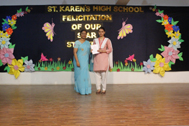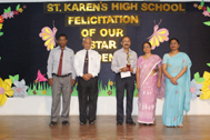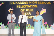 The felicitation ceremony on 4th July, 2016 was a joyful occasion for St Karen's High School when more than 125 students were felicitated with a memento and certificates for securing 10 CGPA in class Xth result, and class XII students, for securing the highest points in their respective stream- science and commerce. The proud parents also materialised with their heart puffed up with joy and their head held high with pride on their child's performance. Students' sincerity and hard work had shown them this day. Director of the school Mr D P Galstaun thanked the Principal, the Vice Principal, and the teachers for being their guiding light. He then congratulated and blessed the students for their bright future lying ahead.