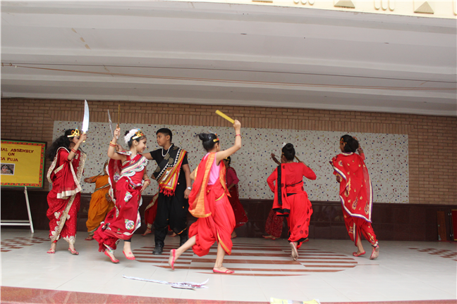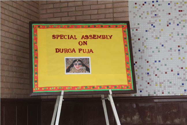 Special Assembly was conducted on the Occasion of Durga Puja on 10th October,2018. Students enacted a play based on Maa Durga's victory over evil. It was shown through the act that victory over evil always has to do with goodness. At the end of the assembly, the children performed Durga Vandana.
