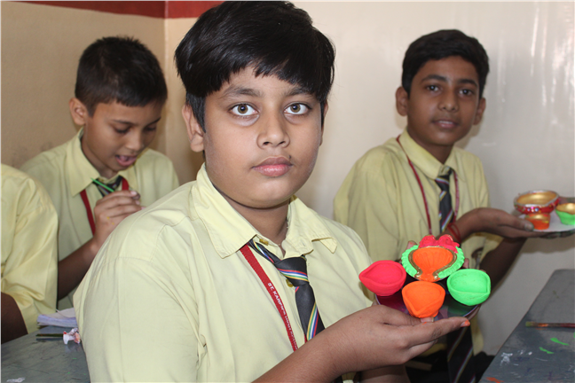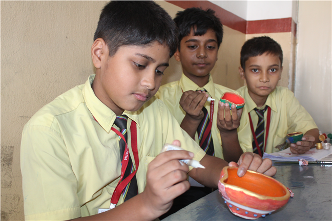 Description: Diya and Lantern making competition was organized on the eve of Diwali on 31st October,2018. All the students of Std. VI, VII and VIII participated enthusiastically. The festive spirit could be seen on their faces. They creatively decorated their earthen Diyas and Lanterns.