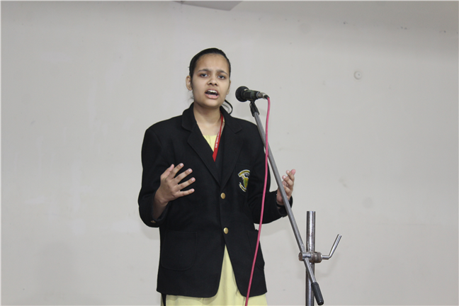 Varun- VIII ‘D’,Mahima- VIII ‘K’, Kirti Arya- VIII ‘C’, Harsh- VIII ‘M’,Gyanvi- VIII- VIII ‘M’, Akriti Sharma- VIII ‘C’, Sneha- VIII ‘F’, Aditi- VIII ‘H’,Yash Vardhan- VIII ‘H’,Vaishnavi- VIII ‘G’, Vaibhav- VIII ‘C’,Preeti- VIII ‘F’, Ananya Ayushi- VIII ‘F’. Among all the participants Vaishnavi of VIII-G was adjudged the "Best Speaker", Akriti Sharma of VIII-C was adjudged the "First Runner-up" and Ananya Ayushi of VIII-F was adjudged the "second Runner-up". Mrs. Sunita Singh and Mr. Aditya Kashyap were the judges.
