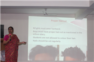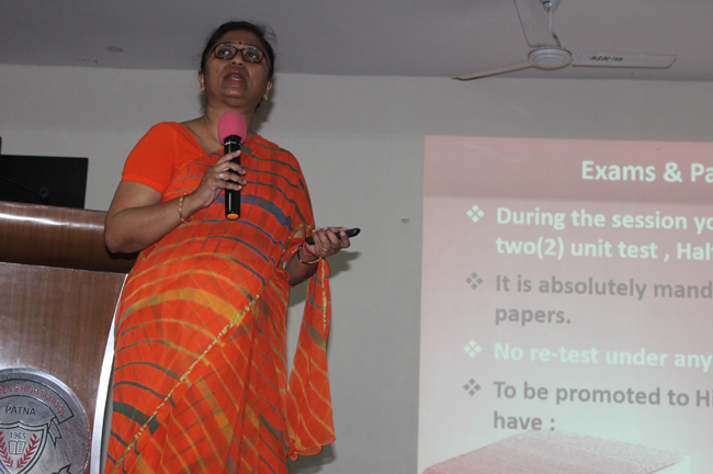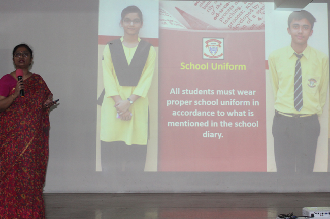 An orientation session was conducted by the Principal Mrs. Seema Singh for the parents of students of std IX on 23rd and 24th of April 2019. The power point presentation comprised of –