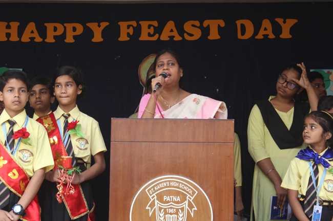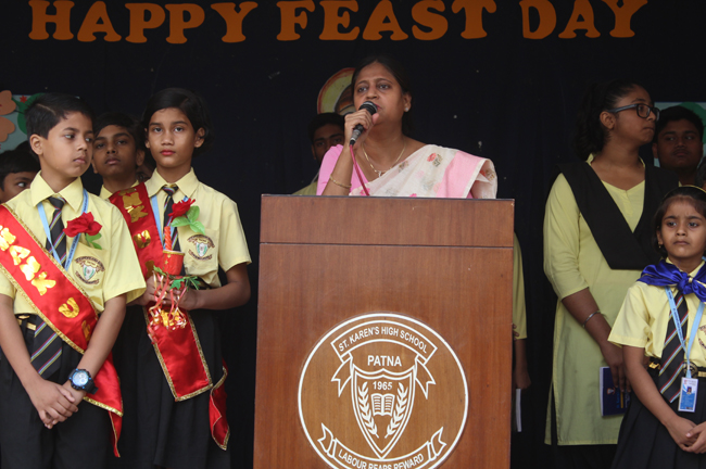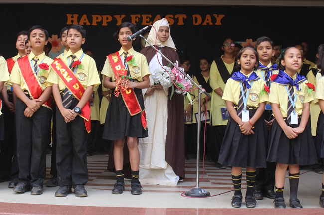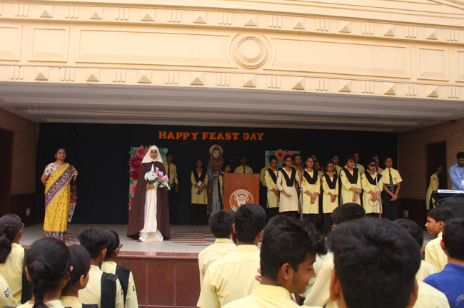 A special assembly was organised on the occasion of Feast Day. Prayers were dedicated to our patron St. of Siena. Students of class X gave a speech on the importance of dedicated service. The primary students presented melodious hymns to praise the glory of God. Principal ma'am and Vice Principal ma'am encouraged the students and prayed for the blessings of Lord.