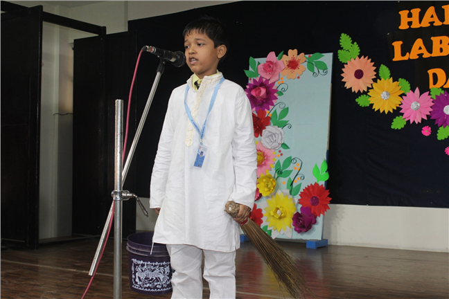 Description: Labour day has always been celebrated with the spirit to thank the backbone of the country who work relentlessly to keep the wheels of the nation rolling. To appreciate their efforts round-the-clock, St. Karen’s celebrated “May Day” with an illustrative fancy dress by the kids of std I and II. It was a pleasure to see the children dressed up in different characters. The children were dressed in appropriate costume according to the theme, Labours Day. To add to the celebrations, the tenthers presented a very unique skit ‘Neev’ which applauded the labours - the very foundation of our country. The performance was followed by some melodious songs recreated by our very own Thappa Ji. The function ended on an inspirational note with Director Sir’s motivational speech and the distribution of gifts as a token of appreciation to all the Support Staff. Kamlesh Ji and Vijay Thappa were felicitated for their dedication and hard work for the school with certificates and cash award.