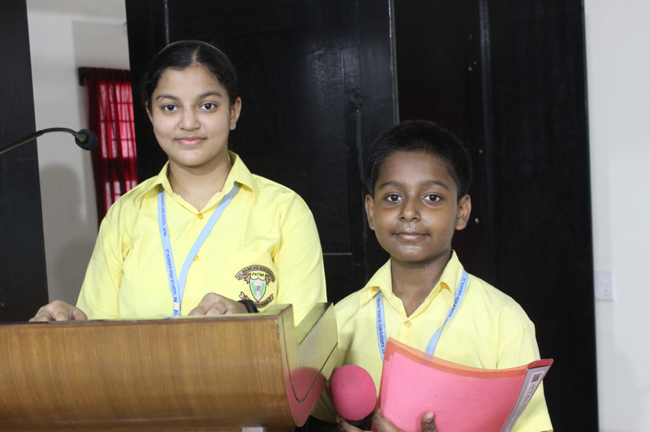 A Hindi Elocution competition was organised for the students of Class VI on 8th May 2019.The participants of the competition mesmerised everyone with their performances. Honorable Principal Ma'am and the Judges praised the participants for their brilliant performances. Shubhangi Sagarika class VI E secured the first position. Pragya Ranjan VI G and Abhimanyu Singh VI G secured the second and the third position.
