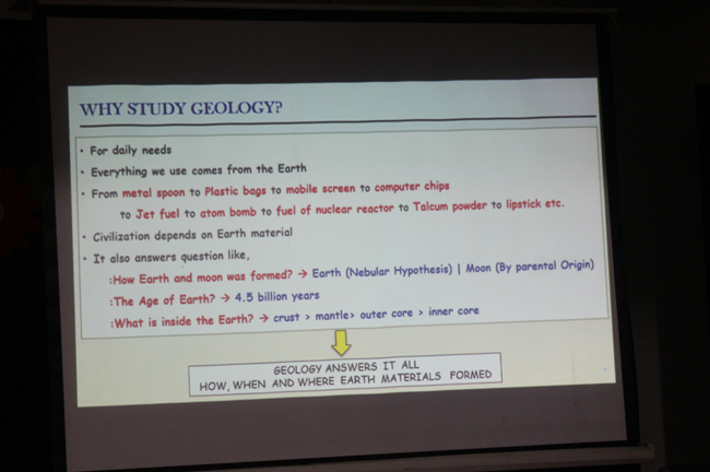 Description: Scope and job opportunities in Geology as subject in the school level. A workshop was conducted by Miss Himali R. Deo and Shreya Singh Scientist of the Geological Survey of India on 10th July,2019. The workshop enlightened the students about the course and its related career. Workshop participants were provided with a detailed information about the Earth, endogenic activities, relief, occurrence of minerals, water crisis, water harvesting mechanisms and environmental issues.