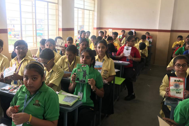 A painting competition was organised in the school premises on Kargil Diwas. Students enthusiastically participated and made beautiful cards for our soldiers posted at the border. The cards were collected and packed and sent to the JAWANS of Indian Army through Dainik Jagran.