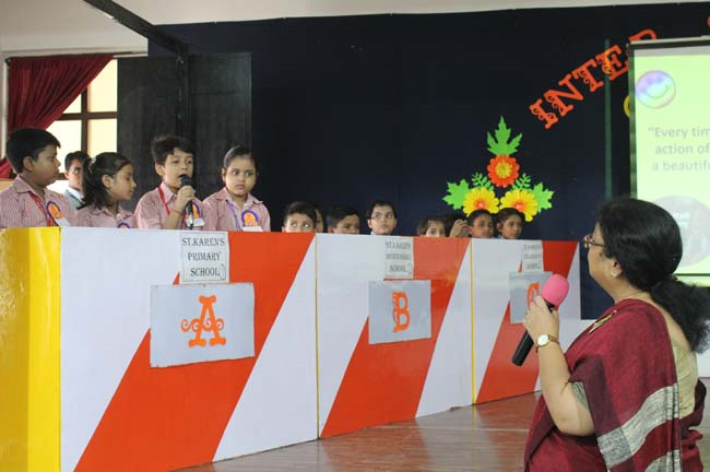 Description: On 14th October, 2019 Inter School Quiz Competition was held in St. Karen’s High School. In which all the other branches of St. Karen’s had taken part. The quiz was conducted at two levels. Level -1 Was for class 1 and 2 and Level-2 was for class 3,4,5. The competition was conducted by our resource person Mrs. Chitralekha Bhaskar from Scholastic Kolkata. The students performed very well. They were excited and ready to express their knowledge.The winners are as follows- For Level -1 St. Karen’s Collegiate School secured 1st rank, St. Karen’s High School secured 2nd rank and St. Karen’s Secondary School secured 3rd rank. For Level-2 St. Karen’s Collegiate School secured 1st rank, St. Karen’s Secondary School secured 2nd rank and St. Karen’s Primary School secured 3rd rank.