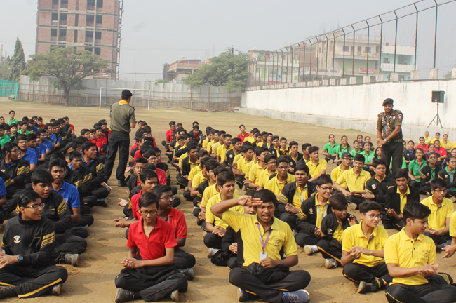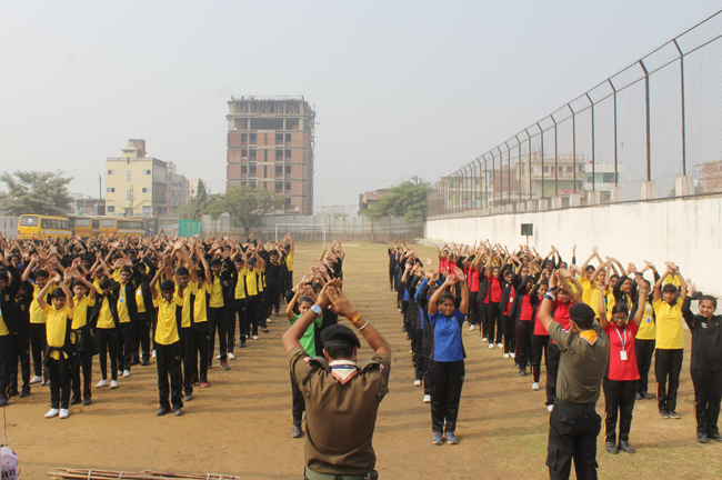 Description: A two days camp of the Scouts and guides movements and its importance was conducted for the students of class IX and XI on 29th and 30th Nov, 2019. The resource person guided the students about the emergency measures to be undertaken during natural disasters. The students were trained to make a stretcher for carrying patients.The experts discussed about the lifestyle of soldiers who live with minimum facilities in extreme conditions. The students participated enthusiastically. Students were informed about self defence mechanisms.