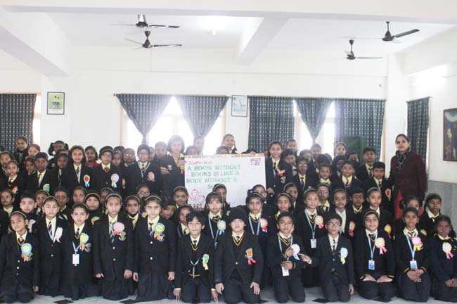 Today’s Readers are tomorrow’s leaders. On the occasion of One Nation Reading held on 24th Jan,2020, children from the primary wing participated with great enthusiasm. All the children from I to V took pledge together and had a reading session for the next 10 minutes. Children coloured the badges and wrote their own slogans based on reading which encouraged them to improve their reading skills and motivated the children towards reading.