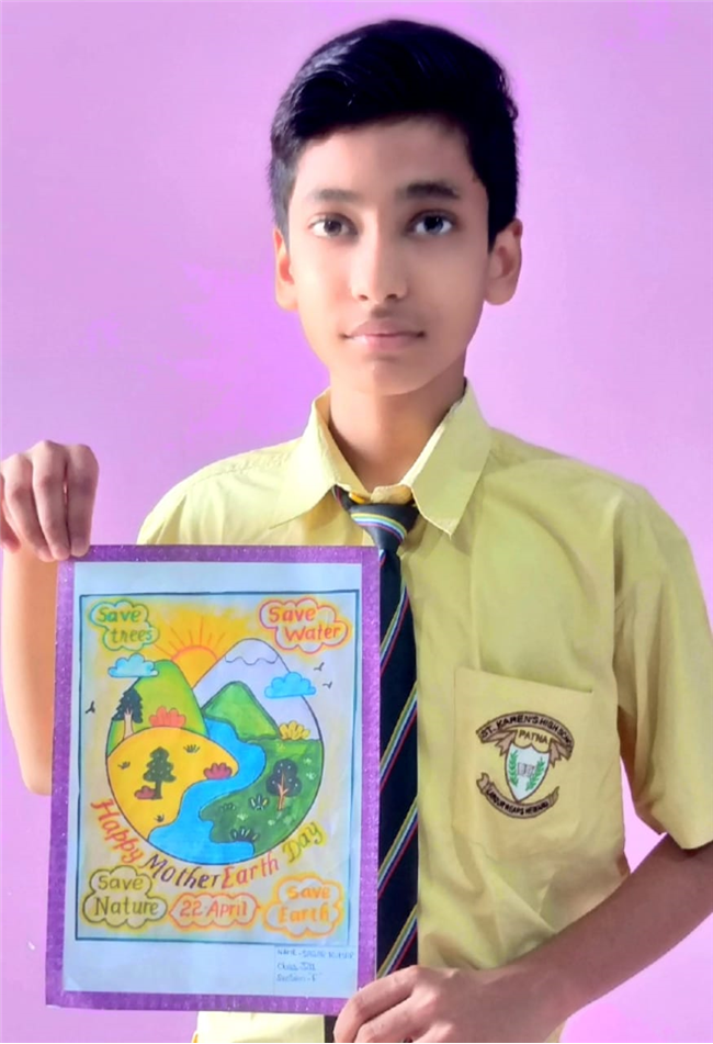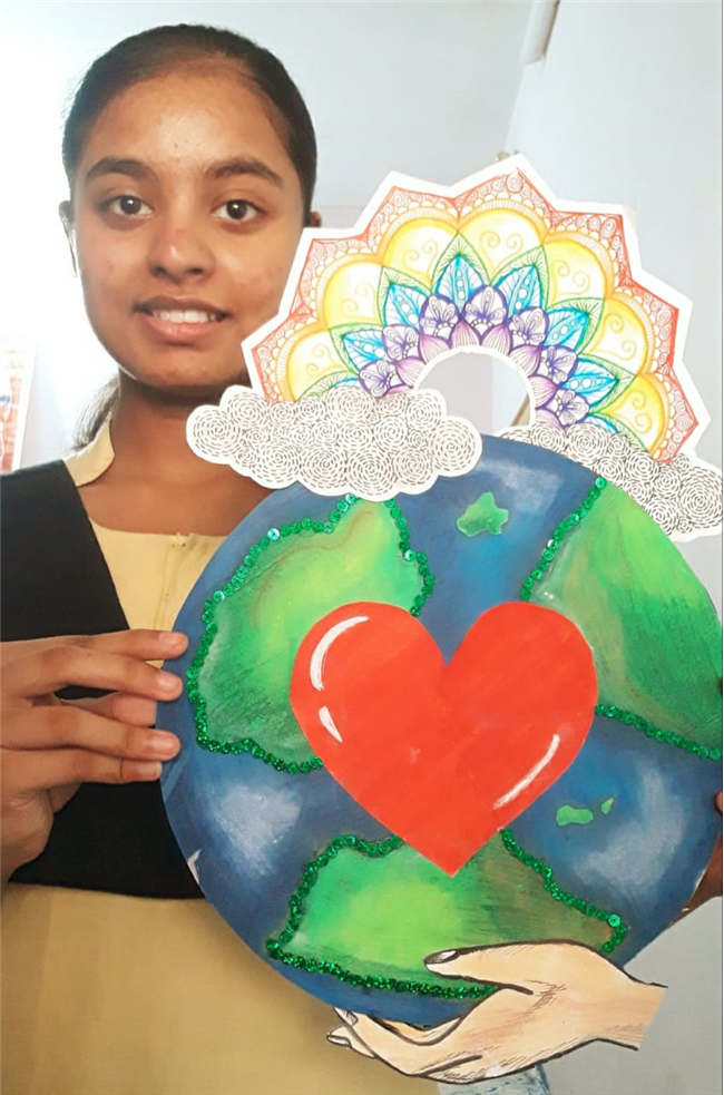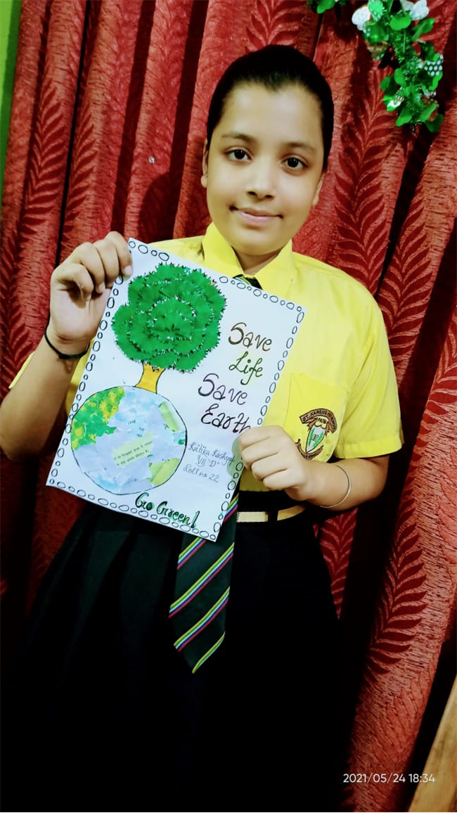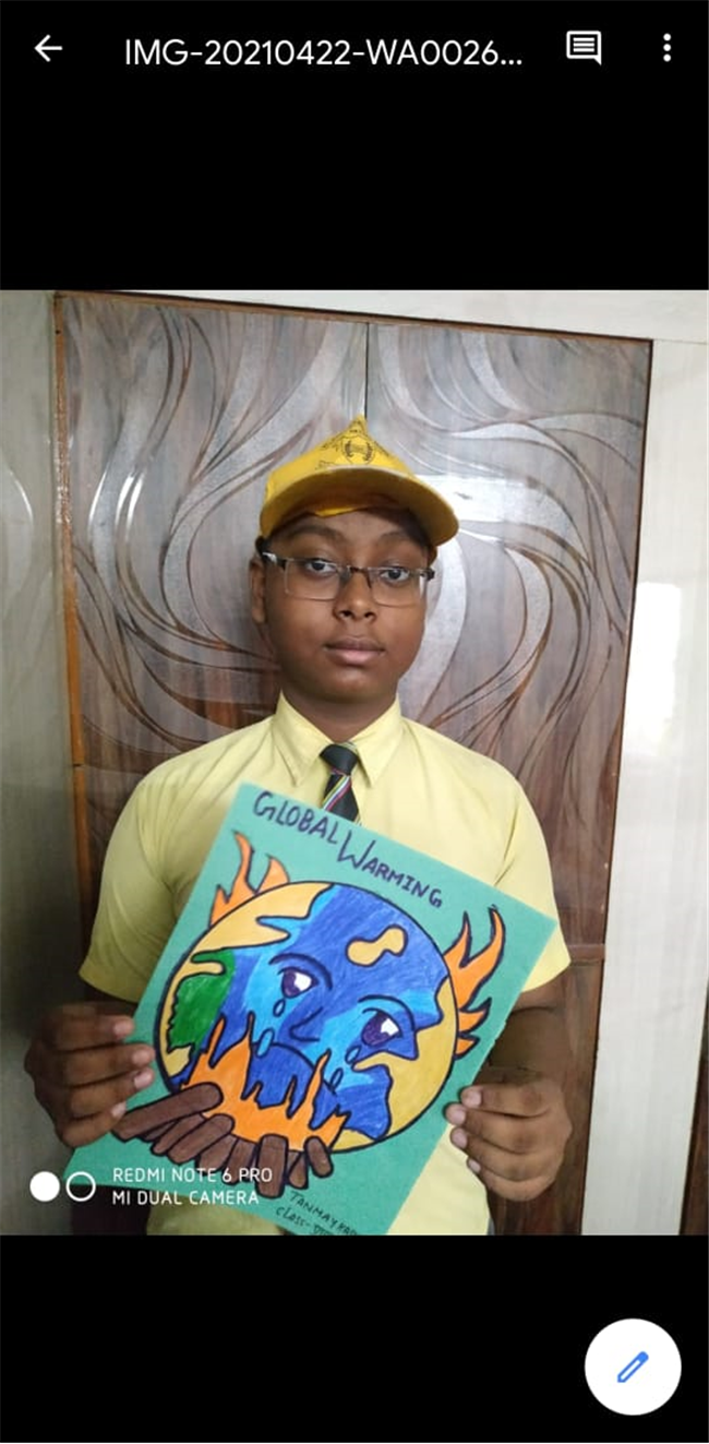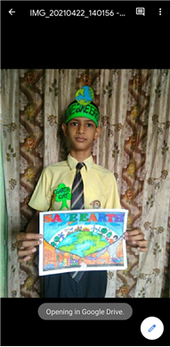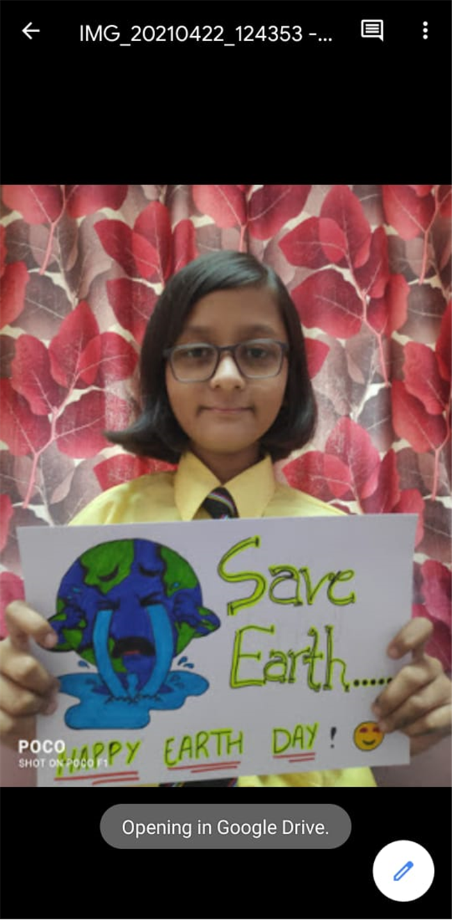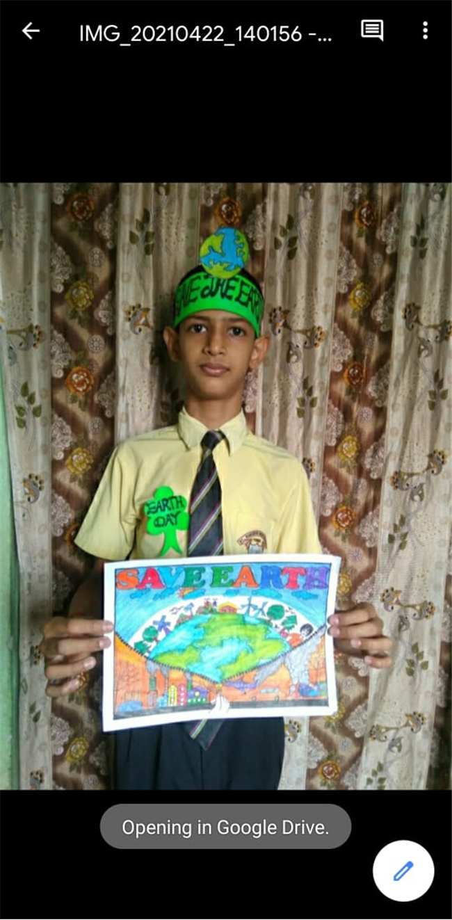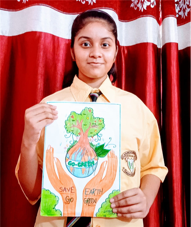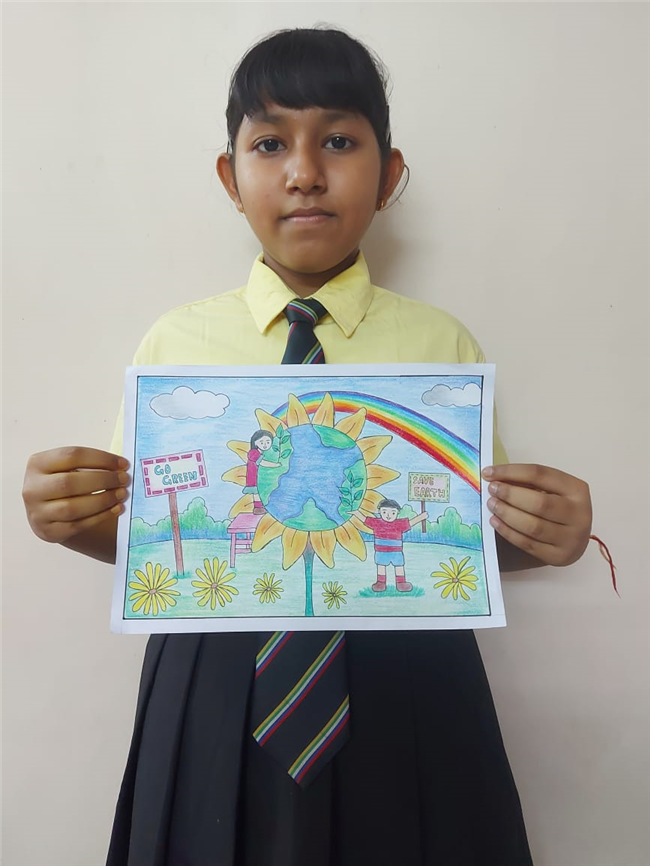 Description: Earth Day is celebrated worldwide on April 22 every year to raise public awareness about the environment and inspire people to save and protect it. St. Karen's High School also believes in sustainable development and protection of the ecosystem. Children of Class 6 to 8 made beautiful paintings to celebrate the occasion on various topics, i.e. Class 6 “Save Earth, Class 7 - “Go Green” Class 8 - “ Global warming”