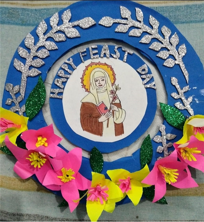 St. Karen's High School celebrates 29th April as the Feast Day every year, as it is the Feast Day of St. Katherine of Sienna, our patron saint. This year a Virtual Holy Mass was conducted by the school management to mark the occasion and invoke the blessings of the Almighty. An activity of 'Wall Hanging' making was organised for class VIth students and 'Photo Frame making activity was conducted for Class VII and VIIth students.