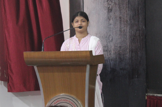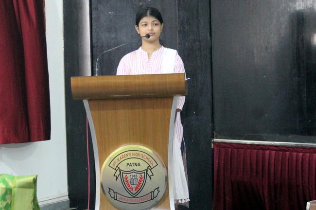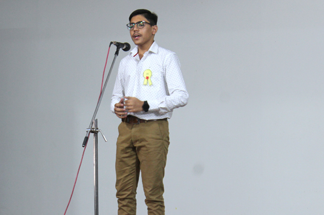 An English speech competition was organised for the students of class IX on 21st Oct,2021. The participants mesmerised everyone with their speeches. Honourable Principal Ma’am, Co-ordinator Ma'am and the judges-Mrs. Subhadra Singh and Mrs. Tasneem Khan applauded the participants for their brilliant performances. The first position was bagged by Mahi Sinha of 9H, the second position went to Ashutosh Arya of 9K, the third position went to Janvi Singh of 9M. The vote of thanks was proposed by Mrs. Chaitali Bhattacharya.