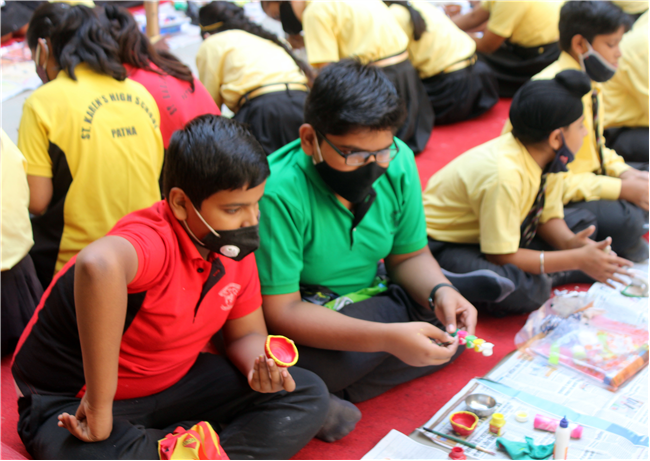 Diya Making Competition was held in the premises of St. Karen’s High School on 29th Oct, 2021. Students of Std. VI, VII & VIII got the opportunity to showcase their diya making skills. The students whose diyas were adjudged the best were declared winners of their respective sections.