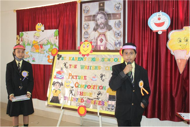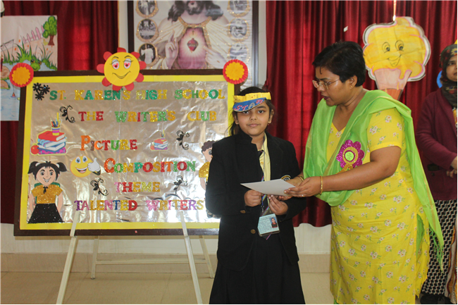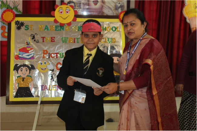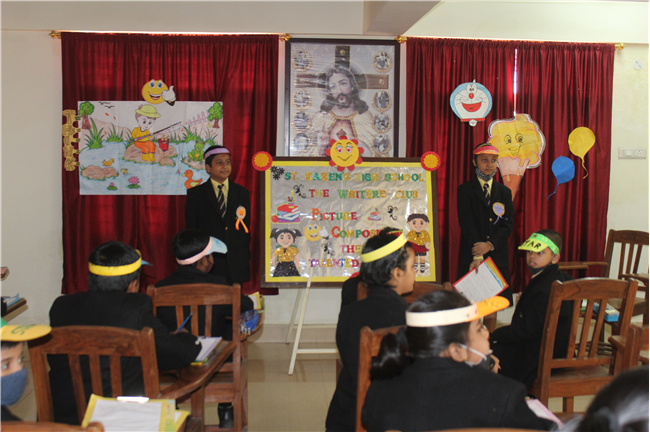 Description: The Writer's Club organized a Picture Composition Club Activity for STD - 2 on 10th December 2021 to empower the imagination of the students and their creativity encouraging the kids to exercise their young and exuberant minds. The objective of the event was to enhance the writing ability and interest towards composing stories by visualizing pictures and to ignite the creative spark among the students promoting them on the creative path of writing and its expression through the medium of writing which reinforced the vocabulary, the ability of reading comprehension and language of the students. It was conducted in the Multimedia Hall in the Primary Wing . The students presented their creativity through their writing skills. They confidently took part with great enthusiasm. The presentation reflected their confidence and interest towards composing story. The competition was judged by Ms. Seema R. Joseph and Ms. Ghousia Hassan who guided and motivated the students and the team members. The guest of honour was our Coordinator Ms. Rinku Banerjee . It was an interesting and a fantastic experience for the kids to compose new stories by visualizing a picture and write with brainstorming which provided fun and comfortable learning lexico for everyone involved. At the end, our judges appreciated the efforts put in by the team members of The Writer's Club. The winners are as follows :- 1. Abhinav Anand ( 2A) – 1st 2. Nikunj Raj ( 2C ) – 2nd 3. Akshat ( 2B ) – 3rd Consolation Prizes 1. Shivani Singh ( 2B ) 2. Divyanshu Kumar (2D) 3. Aradhya Soni ( 2D)