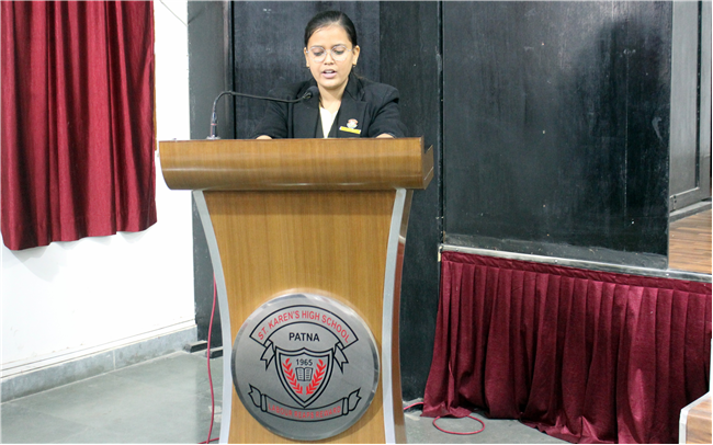 The one hour long extempore ended with the thanks giving and the announcement of prize winners by Manju miss. The prize winners were- 1st position: Tulika Ranjan X B & Hansika Singh X N 2nd position: Muskan Pathak X J & Archeesha Ghosh X E 3rd position: Pushkar Kumar X I & Shambhawi Mishra X