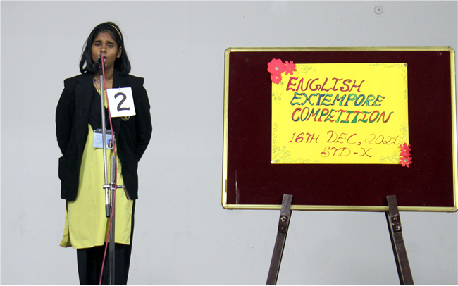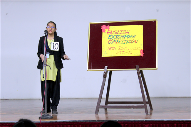 It takes a lot of courage to walk to the podium and speak one’s mind out in front of more than 100 people. If a little twist of not knowing the topic before hand is added, this could easily turn into a nightmare. But it was not true for Karenites- because 35 creative tenthers valiantly stepped up to fire up a fruitful discussion on 16th Dec,2021. Their delivery skills, originality of ideas and the sheer momentum of expressions sent the audience and the judges- Subhadra Miss and Tasneem Miss pondering. The competition was laden with riveting questions which kept the speakers on their toes. The presence of Honourable Director Sir and Our Principal Mrs. Seema Singh added glory to the event.