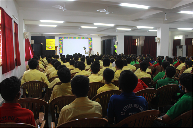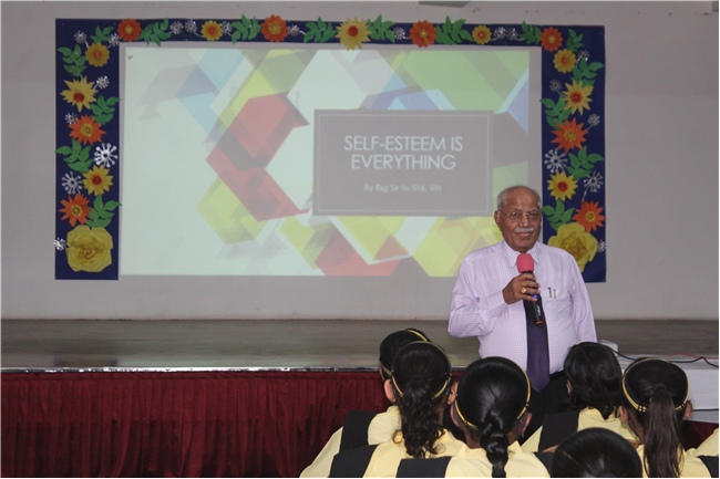 Description: A counselling session on ‘Self Esteem Is Everything’ was conducted by Director Sir (Mr. D.P Galstaun) for Std-8 students on 7th,9th and 10th April,2022 in the Pamela Hall. Interacting with students, Big sir advised them to develop self-esteem and also suggested how to overcome Low Self Esteem. The students also shared their views. A short video clip of Pradeep Mehra helped students to understand the importance of Self-Esteem.