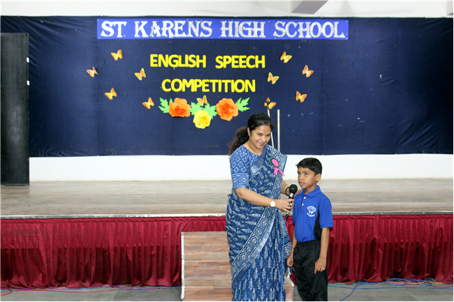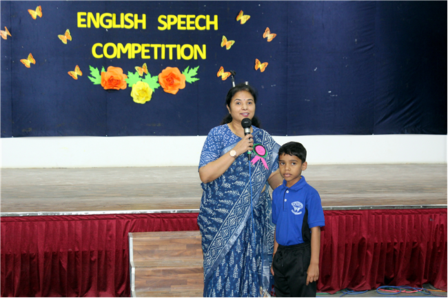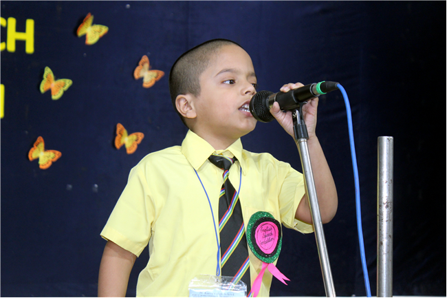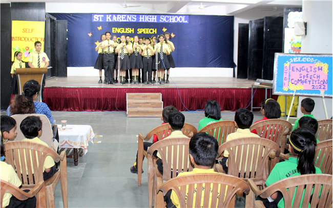 Description: English Speech Competition was held on 25th April,2022 in Pamela Hall. The topic of the competition was ‘Self Introduction’. Students from all sections of Std. I participated in this competition. One could actually see the future leaders in the contestants. Children performed really well and made great impact on the audience by their confidence and way of presentation. They expressed themselves with eloquent expressions. The guest of honour was Mrs. Shefali Srivastava Ma’am. The competition was judged by Mrs. Manjula Bhattacharya and Mrs. Ghousia Hassan. Judges were highly impressed with the confidence of our little champs. The programme was anchored by Anadi and Humaira Azam of Std. V C very nicely. Winners of the competition were- Kushagra Mittal of Std. I D won the first prize, Abhinav of Std. I B won the second prize, Pramayara of Std. I A won the third prize. The winners were awarded certificates. Vote of thanks was offered by Mrs. Smita Nayak. It was heart warming to see amazing performances.
