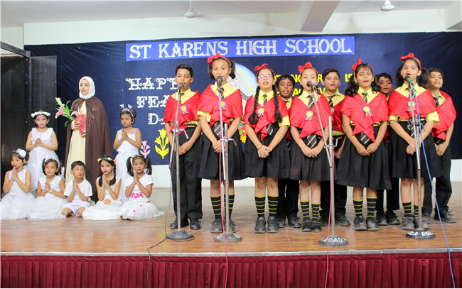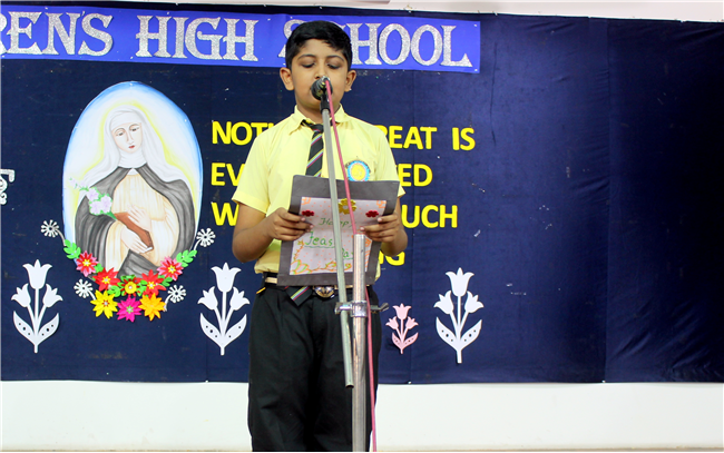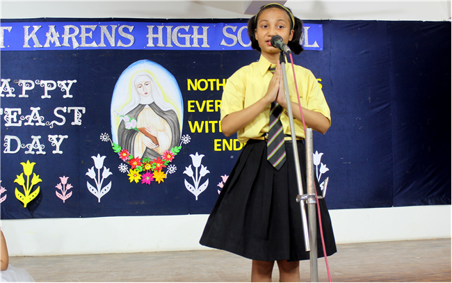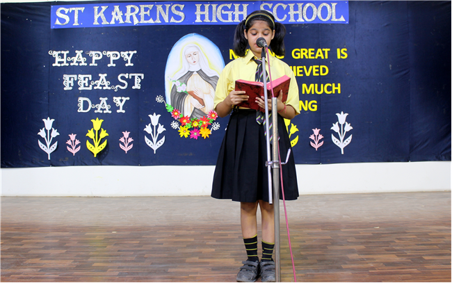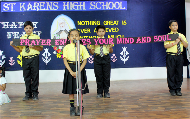 Description: A special assembly was conducted by Primary wing on the occasion of Feast Day. The assembly started with a prayer dance by Std.2 which was prepared by Mrs. Smita Nayak and Juhi Paul followed by Bible reading which was done by Shreyanshi Kumari of Std. 5A. Special Prayer was done by Sneha Kumari of Std. 5 A. Adarsh of Std. 5 B delivered a speech on St. Catherine of Siena. The school choir presented a hymn ‘Open the eyes’ on this pious occasion, thought for the Day was "Prayer enriches our mind and soul" which was said by Swara of Std. 2 D. Last but not the least a quiz was conducted by Sangyan Mishra of Std. 5 A. The programme was concluded by a song “ Happy Feast Day” by the teachers of Primary wing.