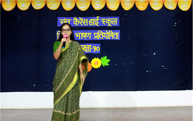 Art of speech is a distillation of micro revolution of mega-ideas enmeshed with enthusiastic delivery, twinkling eyes and raging confidence. The speech competition was on 11th May,2022 represented a wider canvas of all these attributes. Total participants were 24. Speech was on leaders like Sushma Swaraj, Anupriya Patel, Atal Bihari Vajpayee, Sarojini Naidu, Savitribai Phule, and many others. The presentation of each participant was commendable. The jury decided on the winners after observing the performance of the participants very closely. Vartika Sharma of Std. X D won the first prize, Lucky of Std. X J won the second prize and Siddhi of Std. X E, Mahi of Std. X H and Satakshi of Std. X M won the third prize. Best costume- Vartika of Std. X D and Sampriti of Std. X K. The program was concluded by the inspirational words of Principal of the school.
