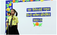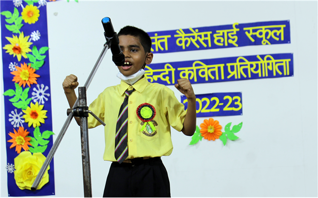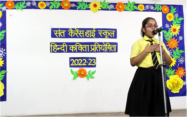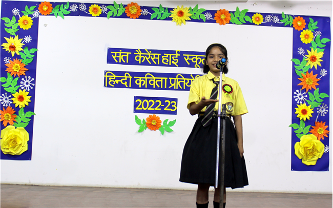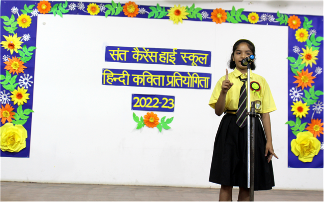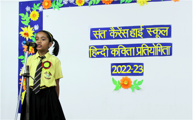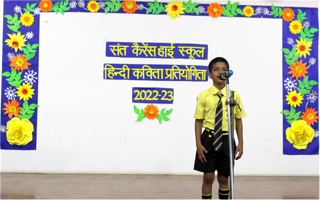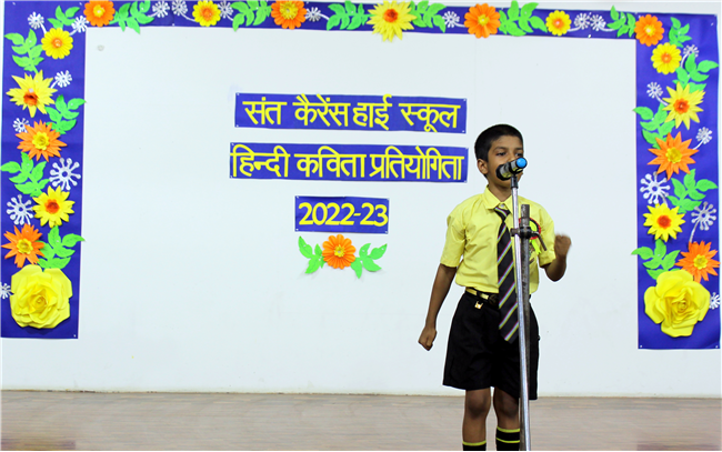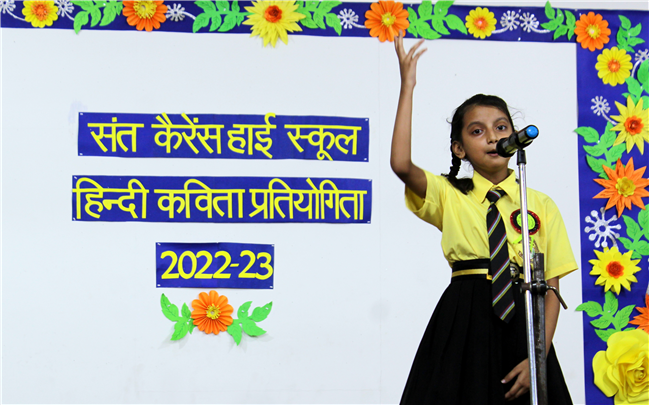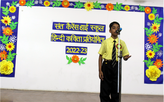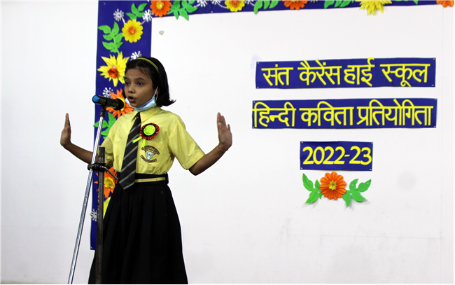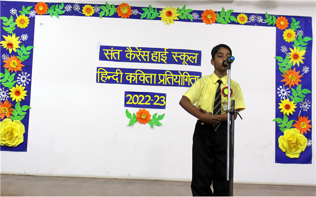 Hindi Recitation Competition was organized on 19th April,2022 at St. Karen’s High School. Beauty is the realm of poetry, the students of Std. III enthusiastically participated in the competition as they got an opportunity to exhibit their talent and confidence. The participants from all the four sections left no stone unturned to win. The young poets enthralled the guests and the judges with their articulation and memory skill while reciting poems. The students were judged on the parameters of confidence, pronunciation, intonation and over all presentation. The judges as well as senior coordinator ma’am Mrs. Subhadra appreciated and applauded the performance of the participants.