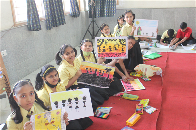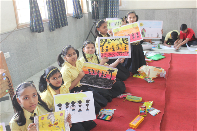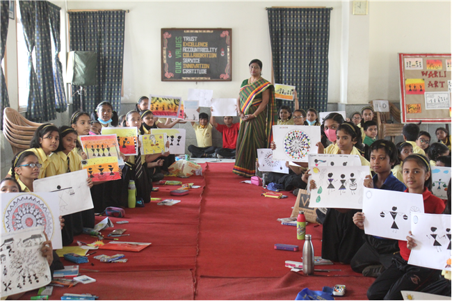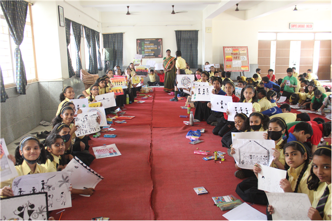 Warli Art Activity was held on 27th April,2022 in Pamela Hall. There were 170 participants from the three sections. Worli Art has flourished first in Kachcha of Gujarat. This art is used in the household to decorate walls, and generally drawn human figure during different occasions by the family members. Students came to know about knew art and traditions. Ms. Sulekha inspired the students to inculcate new art and skills.