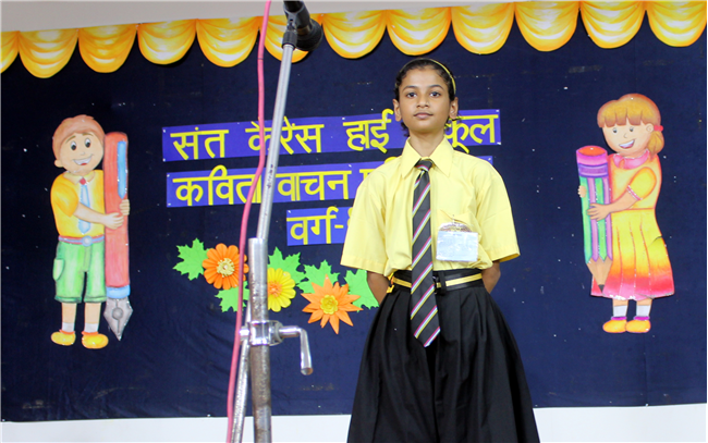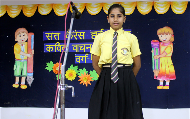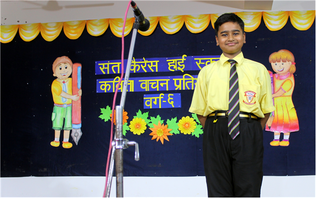 Description: Hindi Elocution Competition was organized on 27th Jun,2022 at St. Karen’s High School in Pamela Hall. Theme for the competition was “Kavita Vachan” two students from each section of Std. VI participated in this competition. Children spoke confidently on the topic and took great enthusiasm to speak out their emotions in a poetic mood. They expressed their feelings with emotions and gratitude. The environment made us spell bound which was really heart touching for all the audience and judges. The competition was judged by Eline ma’am and Ritu ma’am. Judges were highly impressed with the confidence of our little champs. The programme was anchored by Anshu Kumari of Std. VI C and Utkarsh Singh of Std. VI I. Winners of the competition were 1st prize- Aradhya Kanak of Std. VI J,2nd prize- Piyush Rathore of Std. VI I and 3rd prize- Aradhya Singh of Std. VI E. The winners were awarded with certificate. Vote of thanks was offered by Vijay Victor Osta Sir. Programme was well organized under the guidance of Sadhana Kumari ma’am. It was really heart warming to see amazing performance.