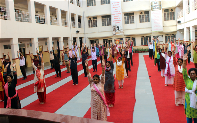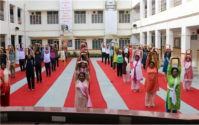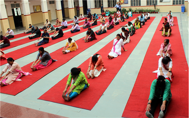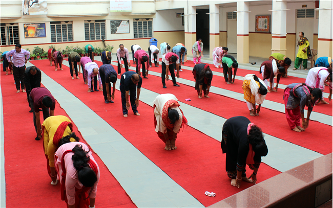 As music is the food for soul, Yoga is the food for body. St. Karen’s High School believes in the perfect combination of body and soul so it celebrated International Yoga Day with great fervour. The teachers of St. Karen’s High School participated in the yoga session organized by the yoga teachers of the school. The whole-hearted participation in the session by the teachers projected their belief in the fact that a healthy mind resides in a healthy body.