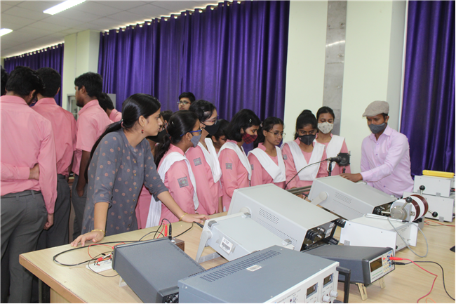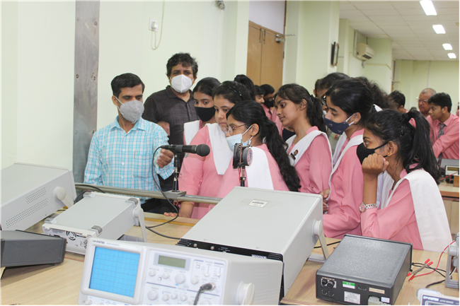 Description: The PCM group of St. Karen’s high school visited IIT Patna. A campus that is a dream of many young students. The students were taken around the campus by Dr. Priyanka Tripathi faculty of IIT Patna and her team of young research scholars. The students visited different labs of Physics, Chemistry, NMR Labs, Glyco chemistry labs etc. and had a great opportunity of understanding about some sophisticated instruments. Prof Ajay D Thakur and Dr. Santosh Kumar of Physics Department IIT demonstrated some experiments like the Helmholtz square experiment, experiment related to strength of electromagnetic waves and refraction of light using rectangular glass slab and prism . Experiments related to sound wave, using cathode ray oscilloscope and Tyndal effect were also demonstrated. Many topics like Thermionic emission, Lorentz force etc. were explained. The Professors encouraged the students for competing IIT entrance examination and achieving their dreams. The students collected a broad overview of reputed institution and were encouraged to labour hard to turn their dreams into reality.
