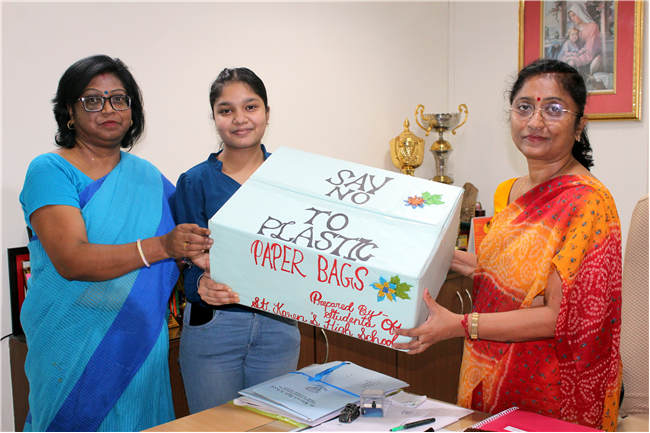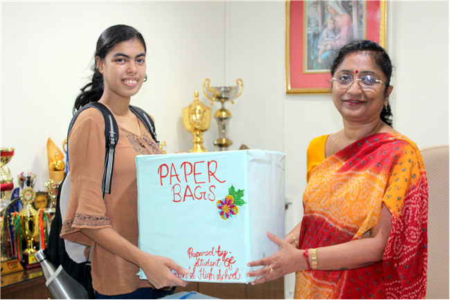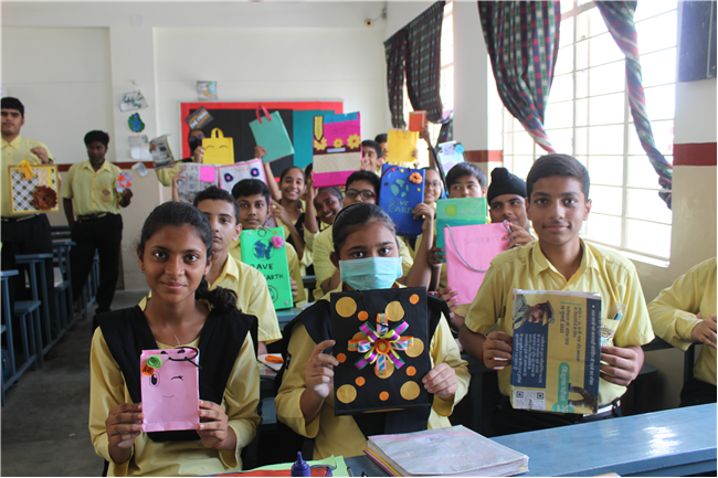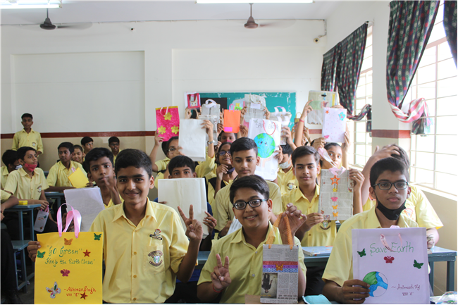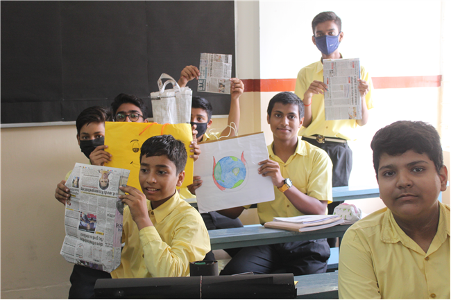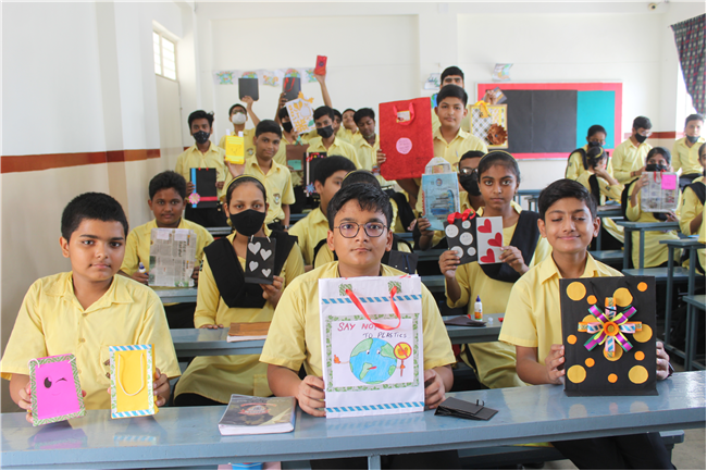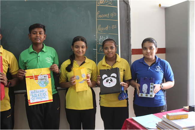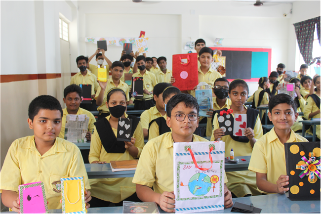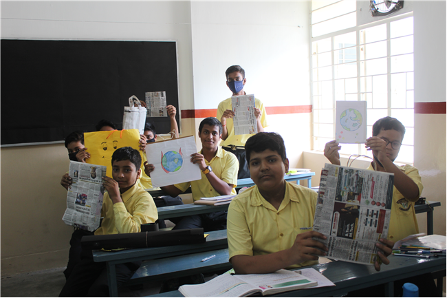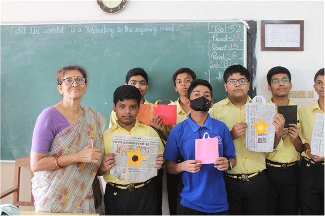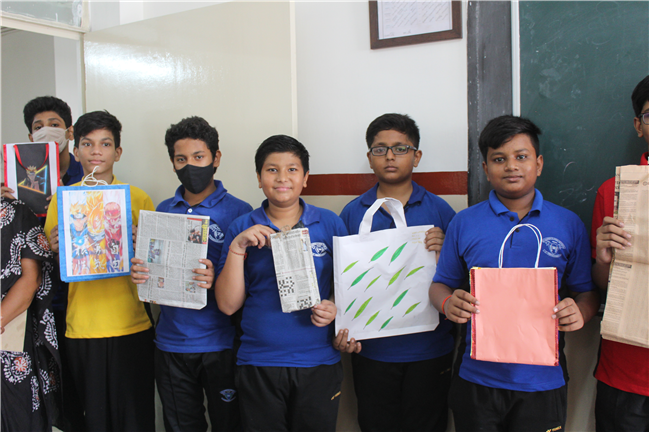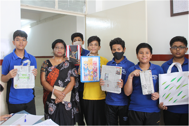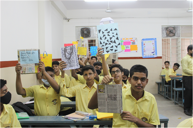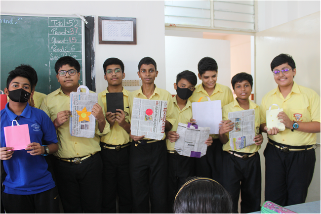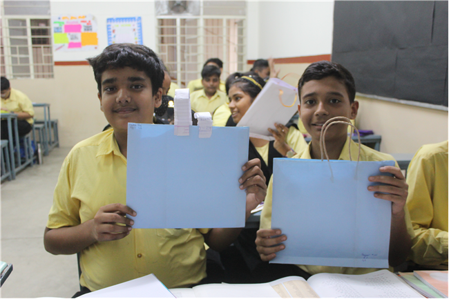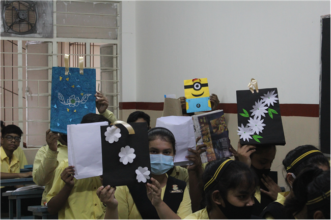 Class VIII students participated in the Paper Bag Making Competition and love for art. This inculcated in the students a sense of recycling and preservation of the environment.