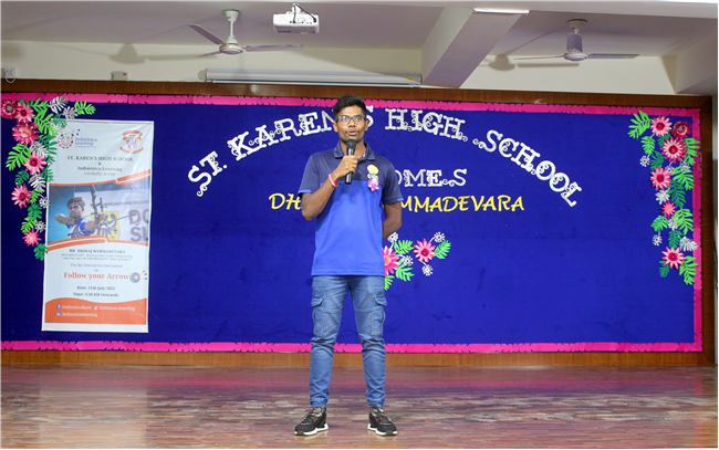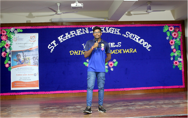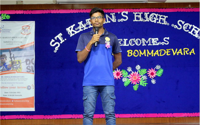 An interactive session was held between the young prodigy and the students of the school which was very motivating and many students already started to visualise themselves as budding archers at the end of the session. Mr. Dhiraj Bommadevara highlighted that one must follow his/her passion with full determination, dedication, sincerity & give it all that you have only then success comes to you. Failures should not deter you from your path. Learn from it & become better.