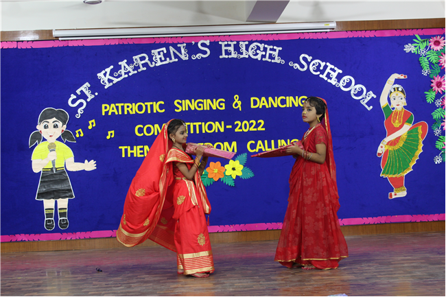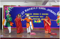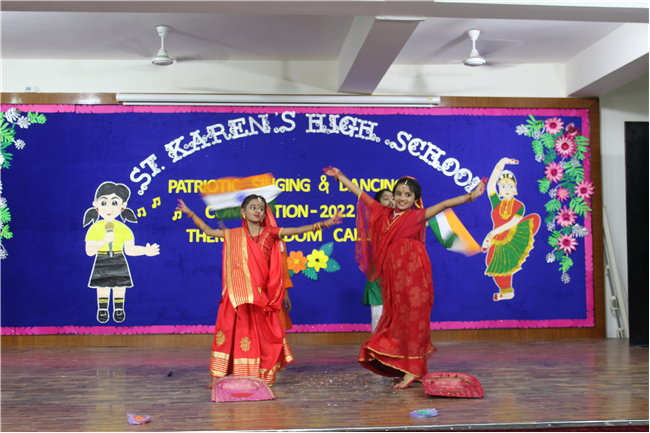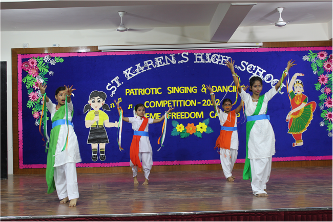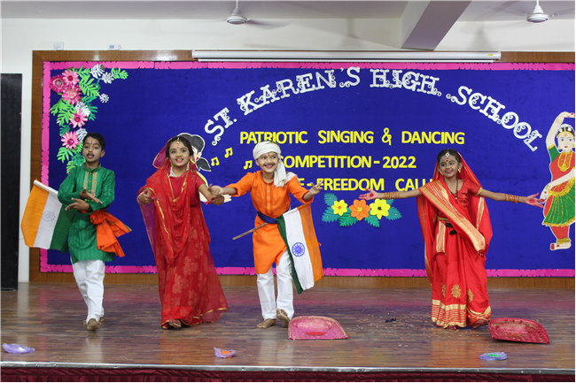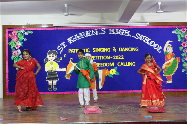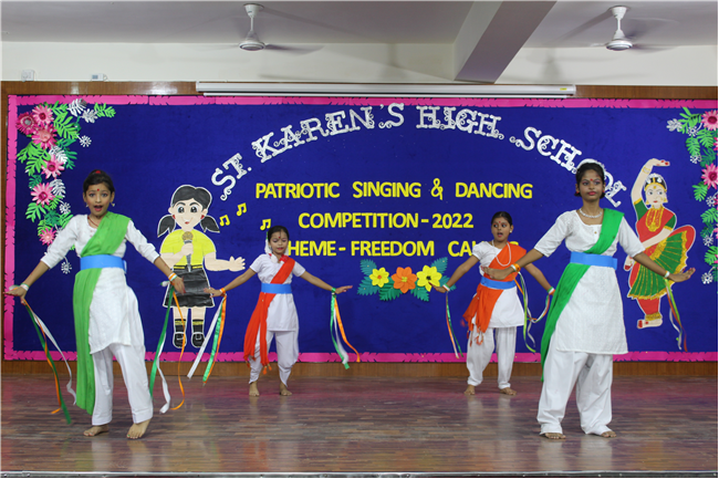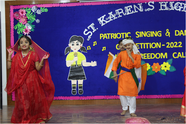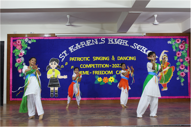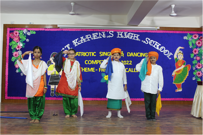 Patriotic Dance and song competition was organized on Monday 8th Aug, 2022 for Std. III and IV in Pamela Hall. The vivacious dancers set the floor on fire with their energetic dance performances and the young aspiring singers filled the air with the tune and lyrics of the beautiful thought provoking Indian Patriotic songs. The Principal and co-ordinators congratulated the winners and appreciated the performance of the children and also encouraged them to participate more in such competitions to enhance their talents. Our winners are in song competition Std. IV 1st prize- Ashwin Kumar of Std. IV A, Sonal Kumari of Std. IV A, Samridhi Kumari of Std. IV A and Palak Jha of Std. IV A, 2nd prize- Aradhya Prakash of Std. IV B, Anant of Std. IV B, Aradhya of Std. IV B and Parnika Pakhi of Std. IV B and the 3rd prize- Shadman Alam of Std. IV C,Aarnav Raj of Std. IV C, Ansh Jha of Std. IV C and Aadya Veer of Std. IV C. Our winner are in Dance Competition 1st prize- Trishna of Std. III C, Shivam of Std. III C, Aditya Singh of Std. III C and Arna of Std. III C,2nd prize- Aaradhya Soni of Std. III D, Saumya Kumari of Std. III D, Aditi Jha of Std. III D and Sanvi Singh of Std. III D and the 3rd prize- Advit Upadhyay of Std. III B, Shreshth of Std. III B, Shivani of Std. III B and Vishwatmika of Std. III B.