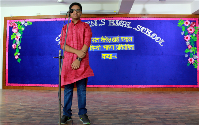 A Hindi Speech Competition was organized for class 9th on 15th July, 2022 in Pamela hall. The participants put up their best to portray the personality they were speaking for. Their efforts were appreciated by our Principal Ma’am and the Judges. Our Principal Ma’am was very positive that the students learnt some inspiring facts regarding the personality. The Judges had a tough time selecting the best speakers. The first position was bagged by Palak of Std. IX E and Ashish Ranjan of Std. IX C, the second position was bagged by Himanshu Kumar of Std. IX A and Shreya Agrawal of Std. IX C and the third position was bagged by Gauri of Std. IX D and Pragya Ranjan of Std. IX D.