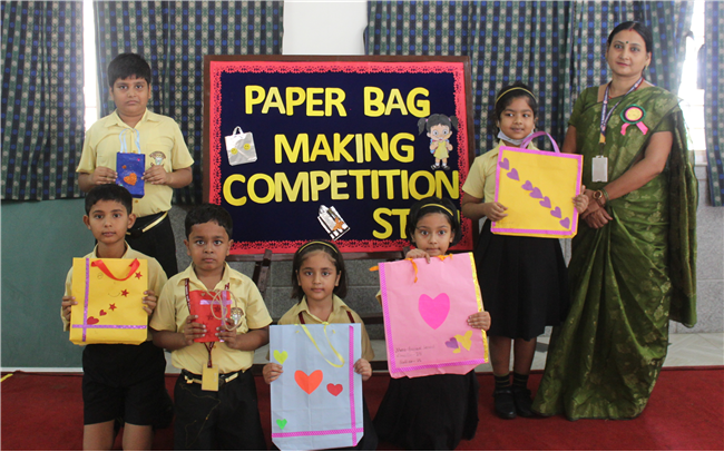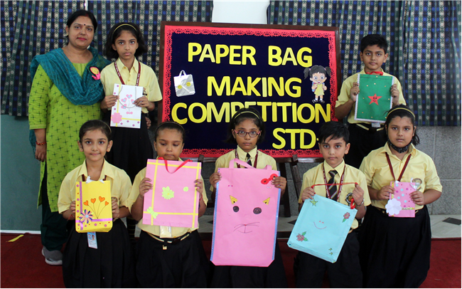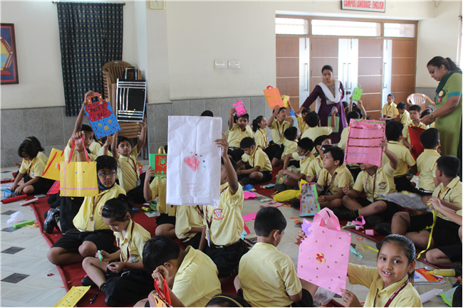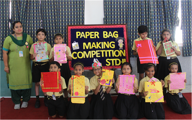 A Paper Bag Making Competition was organized for Std. II on 18th July, 2022 in Primary Building Hall. All students of Std. II participated in this competition. Children showed their love for environment by making biodegradable and recyclable Paper Bag. There efforts were appreciated by our Principal Ma’am and Shefali Ma’am. Children not only made the bags but also decorated it nicely. Judgement was done by Sulekha Ma’am. Prize holders are 1st prize: Shaurya Anant of Std. II D, 2nd prize: Divyanshu Singh of Std. II A and 3rd prize: Aashvi Singh of Std. II B & Mitul Shahaan of Std. II C. The Programme was nicely conducted with the help of Art teacher and all teachers of Std. II. It was really amazing to see children as an environment saver.