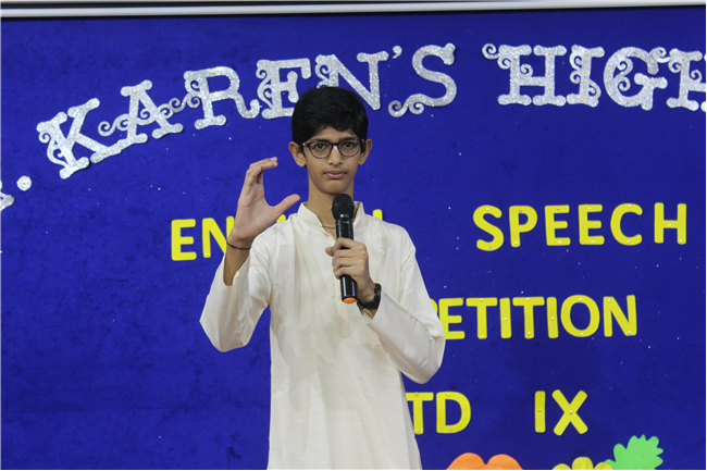 English Speech Competition of class IX was held on 25th Aug,2022. Fifteen students participated in the competition and gave excellent performances. The comparing was done by Vaishnavi of class IX E and the competition was judged by Tasneem Khan ma’am and Shahnawaz Sir. The winners of the competition were 1st position: Nidhi of Std. IX I, 2nd position: Aryan Priyam of Std. IX J and Padmaja Anant of Std. IX A,3rd position: Pragya Ranjan of Std. IX D and Ashish Ranjan of Std. IX C.