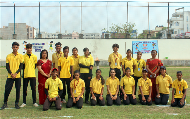 On 29th Aug,2022 St. Karen's High School celebrated National Sports Day with the students of Std.1 to 5. 60m. and 100m races were organized. Children participated with full zeal and enthusiasm. Weather too was favourable. The little audience were very energetic and cheering the participants. It was an overall well organized day.
