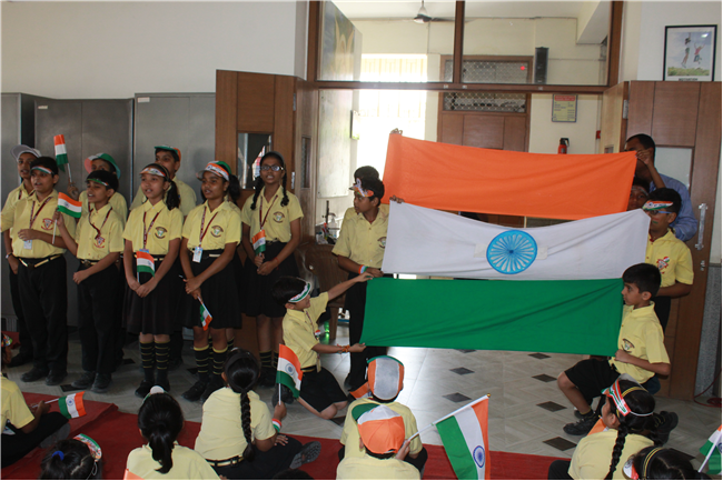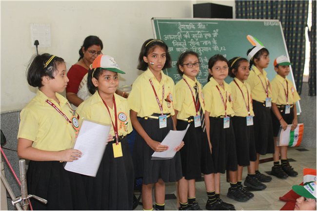 Special Assembly was very good done by class 2A, 2B, 2C and 2D Children. They started with motivational thought. Independence Day action Song was very nice Hindi Kavita was also good children sang a beautiful patriotic song with Papiya Miss with our National Flag. It was beautiful performance by all primary children. Last but not the least a quiz was conducted which was based on Independence Day. The whole programme was very good.