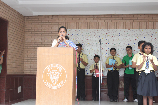 A Special Assembly was conducted by Class V on the occasion of Gandhi Jayanti. Children presented a nice song. There was an English speech, a Hindi speech and a poem on Mahatma Gandhi. A quiz was conducted related to Gandhiji's life. The programme was a wonderful one.