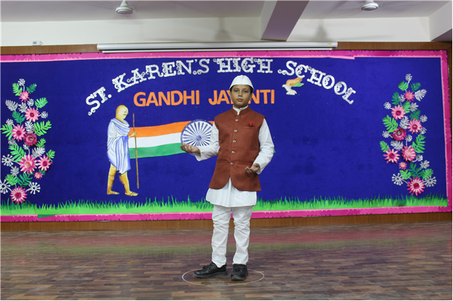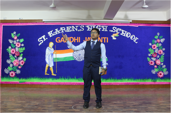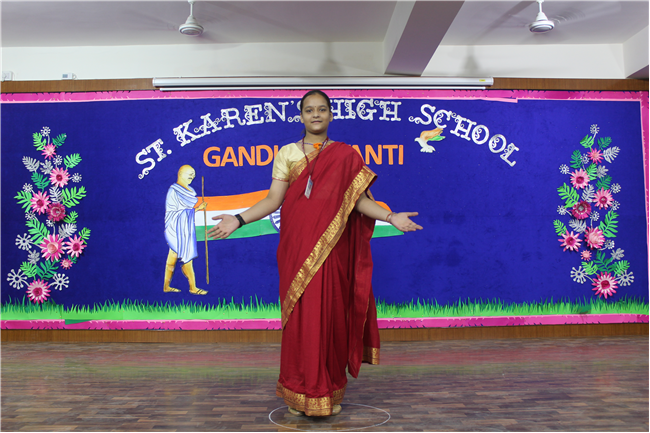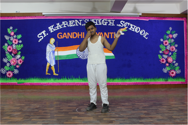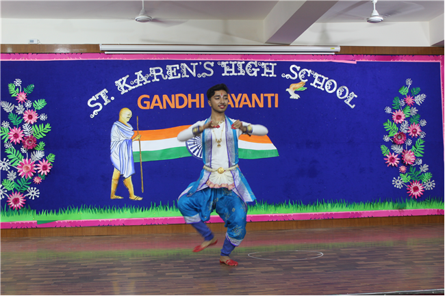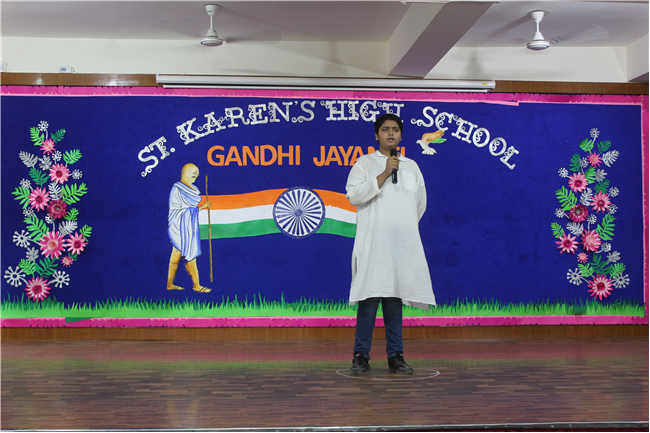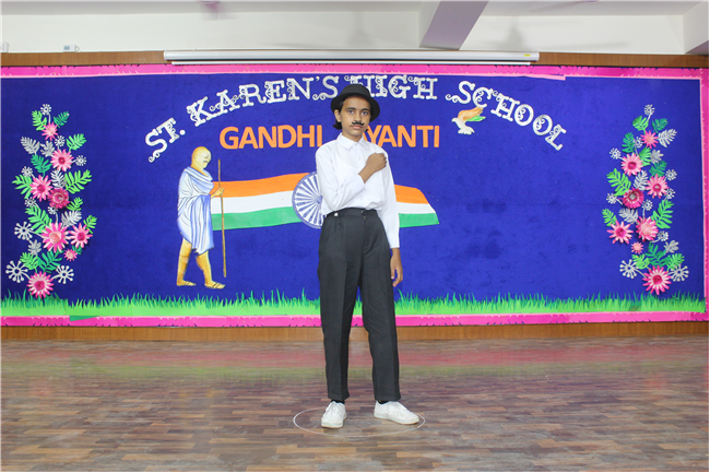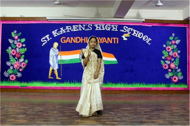 St. Karen’s High School, Gola Road celebrated the spirit of Mahatma Gandhi and Lal Bahadur Shastri on 30th September 2022. Sarthak of Std. 12F did an emotive dance on Gandhiji’s favorite hymn, signifying morality to be the way of life. What followed was a song performance by Aryan of Std. 10 C and a fancy dress by the students of Std. 6th. Remembering our national heroes through their images in these students was a unique way to reinforce their values in the School Curriculum. Kunal of Std.10 C spoke on Lal Bahadur Shastri and his able advocacy for peace and hardwork. The girls from Std.10th came forward with a dance on Sabarmati ki Santh which added to the fervour of the occasion. After the dance, the audience came to know a little more about the Father of the Nation through the speech of Sourya of Std. 10G who talked about his very high order of Satyagraha.His values of secularism and unity was embodied in a skit presentation by the students of Class 10. The program concluded with a trivia quiz by the Principal - Mrs. Seema Singh and a Vote of Thanks by Manju Gupta miss