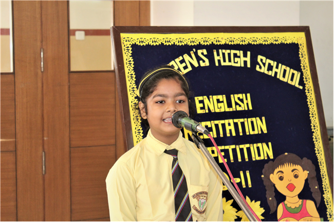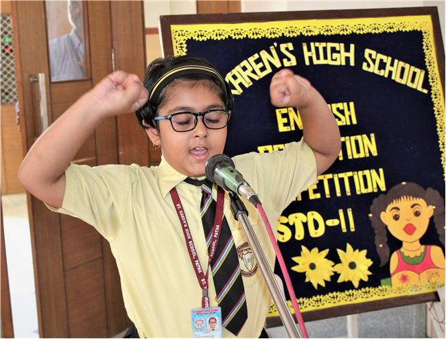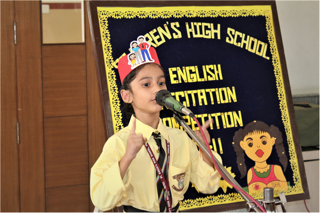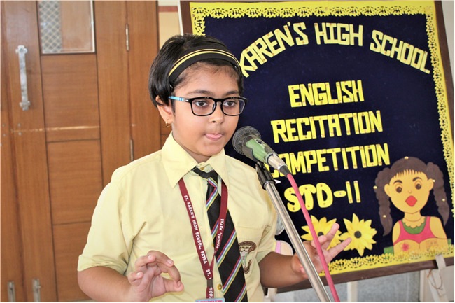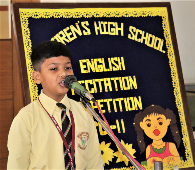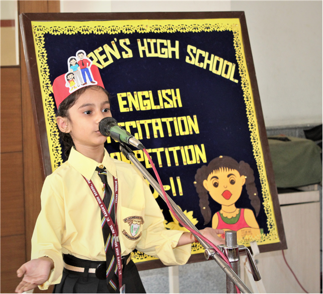 English recitation competition was organised in the primary hall. The activity was based on the theme. ‘Nature or family’. The children were exposed to improve their speaking skills and to present the show confidently. They showcased their recitation skill in such a way that it truly expressed their pronunciation and body language.